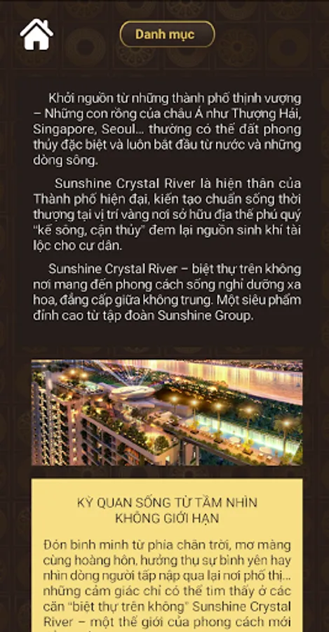 Applications SUNSHINE CRYSTAL RIVER introduces real estate projects Application SUNSHINE CRYSTAL RIVER.