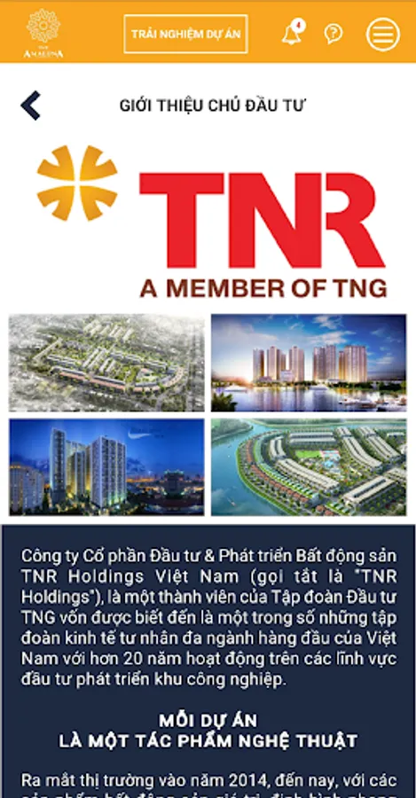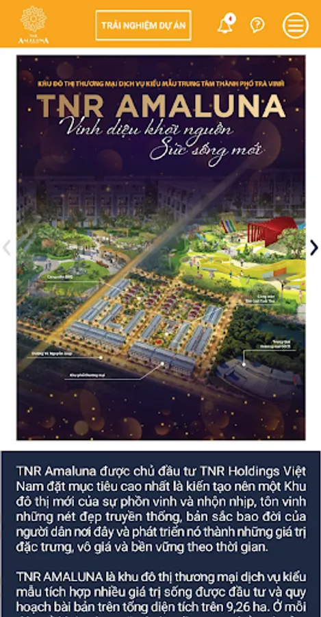 The application allows you to learn TNR Amaluna Tra Vinh project information in the most complete and attractive way.