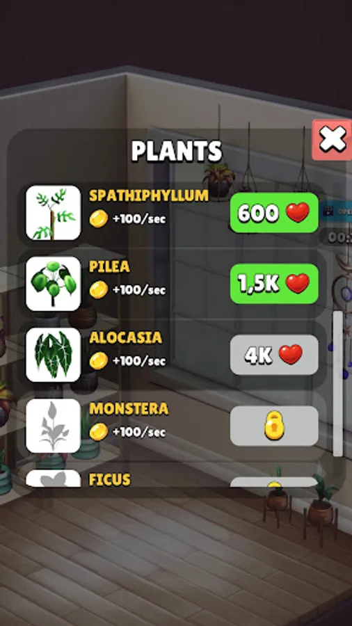 💰 Earn and Expand: Your flourishing garden is not only a sight to behold but also a source of income. Grow Plants and share them and garden designs with other enthusiasts. Gain likes and followers, and receive rewards that will allow you to expand your green spaces, discover new species of ferns, alocasia, spathiphyllum, succulents, monstera, oxalis, ficus and become a renowned tycoon game.