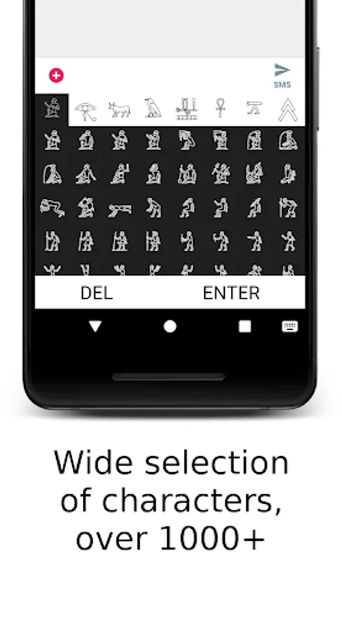 Glyph is a keyboard for typing all the Egyptian Hieroglyphs included in Unicode. They can be used in all your messaging and social media apps that support it.