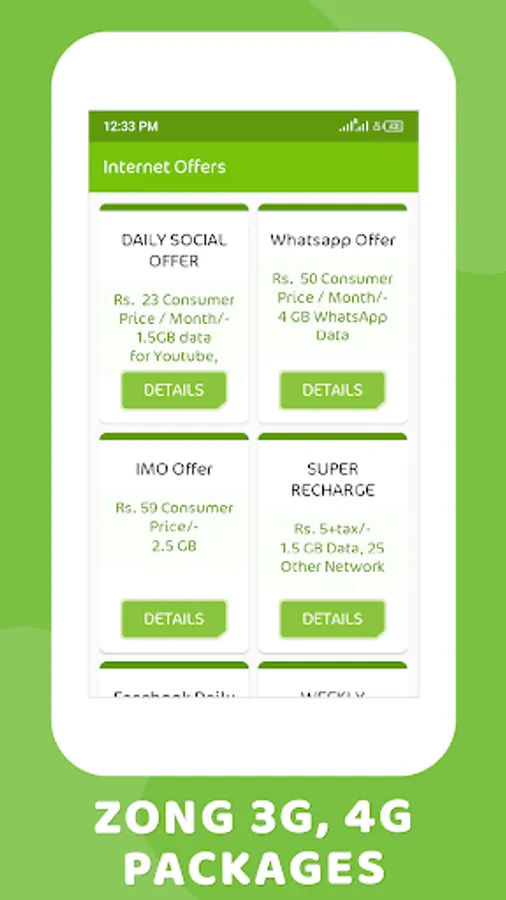 It includes all Zong packages on a daily, weekly, and monthly basis.
