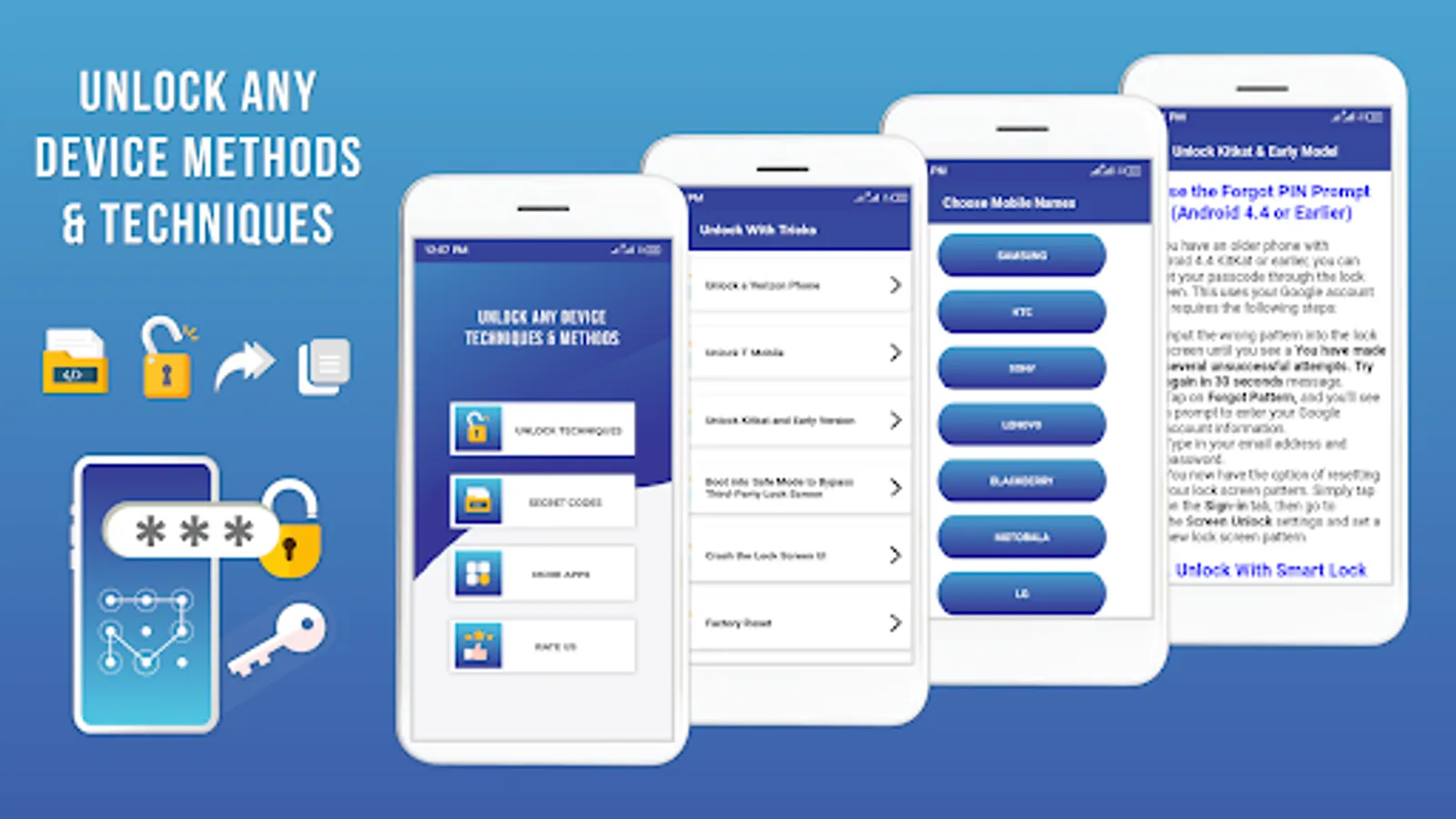 Unlock Any Device Method and Unlock Any Device Techniques App also cover password recovery methods and Remove Pin Pattern Lock Password, making it easy for users to regain access. Unlock your phone for free or Swipe to Unlock all Phones without a Computer. We've got you covered with simple and effective techniques for Remove Pattern Lock and All Phones Reset & Secret Codes.