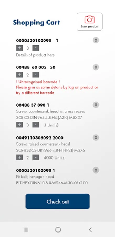 After identifying customer, customer can add products in cart by scanning the bar code of product and can also add quantity for that product.