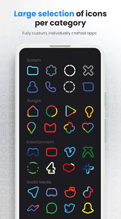 Get ready to elevate your Android device with BASIT, the ultimate icon pack that adds a unique spin to minimalistic icons. With a fully customised BASIT icon pack, you can enjoy a sleek and modern design that takes the distinguishing features and colours of your favourite app icons and transforms them into an outlined minimalistic masterpiece.