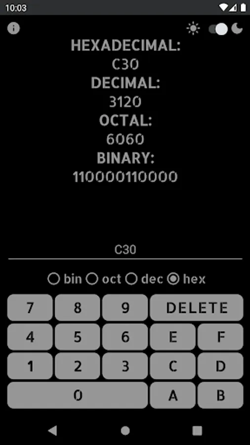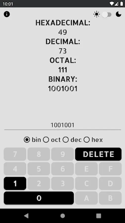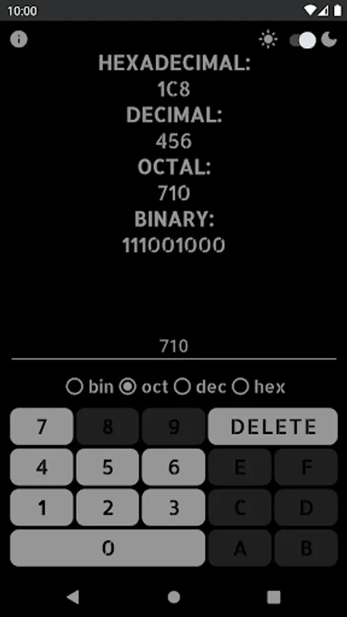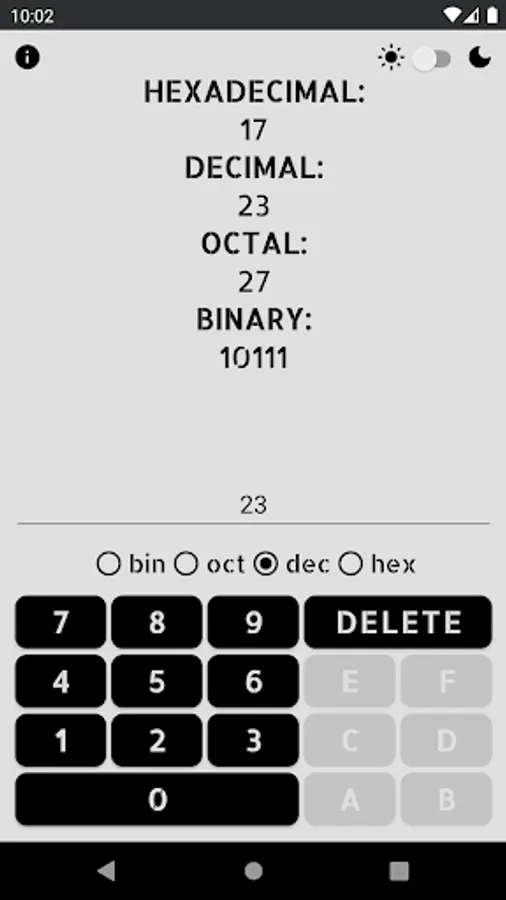 -The application has a built in keyboard that enables and disables the buttons that can be used in each number system.