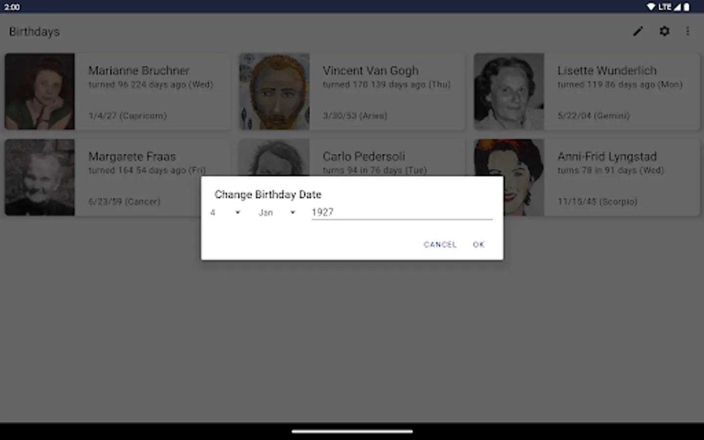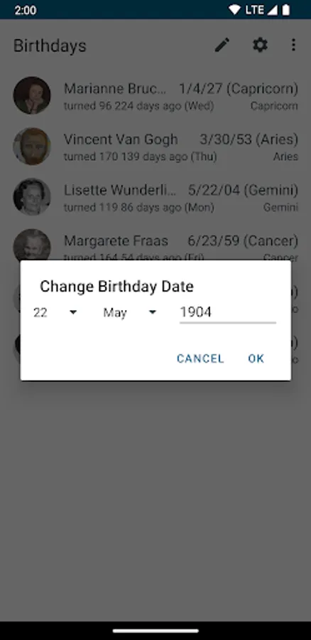 TKBirthdayReminder is a beautiful birthday list. Once a day you receive a notification that reminds you about upcoming birthdays. You can place a widget on your home screen, too.