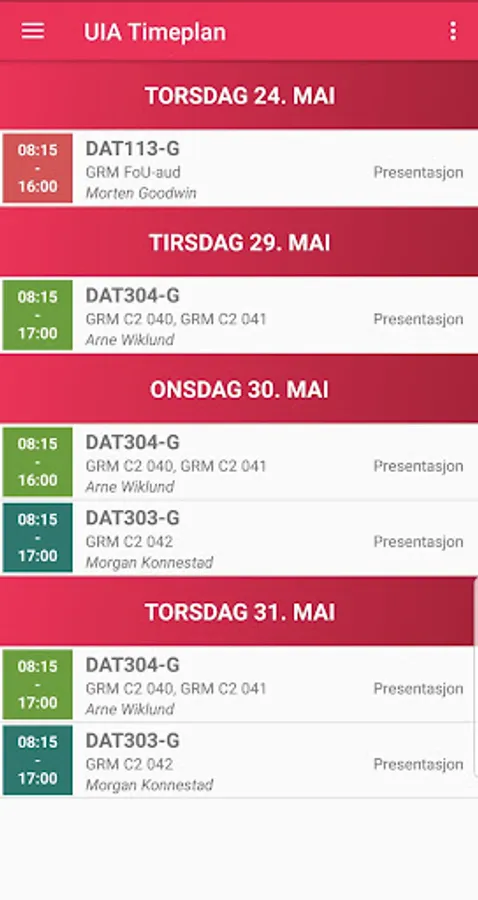 Get a full overview of the schedule in a simple list at the University of Agder.