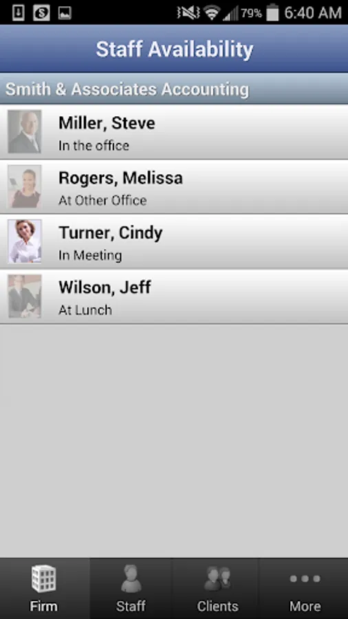 • Staff Availability – Check staff work load, phone messages, contact information, and notifications.