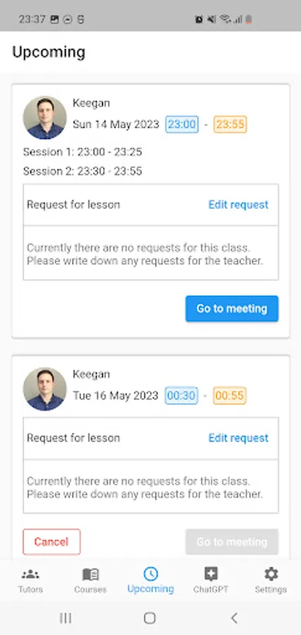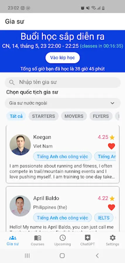 LearnEnglish is a one-on-one English learning app with teachers. The application has all the necessary features for users. Users can view the list of teachers, view details about teachers, set class schedules, review lesson history, .. In addition, the application is also integrated with ChatGPT for users to use. With an easy-to-use interface, suitable for all ages, LearnEnglish will be an essential application for you.