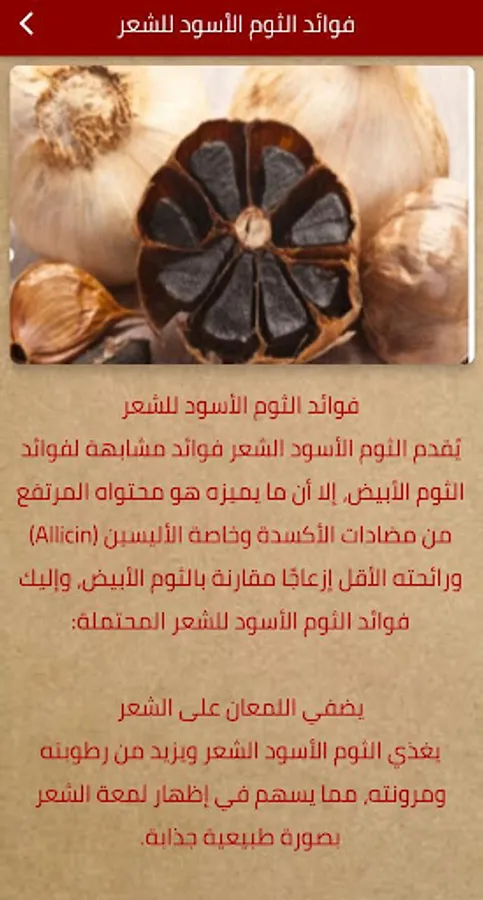Black garlic for hair Black garlic offers hair benefits similar to the benefits of white garlic, but what distinguishes it is its high content of antioxidants and its less annoying smell compared to white garlic, and here are the benefits of black garlic for hair