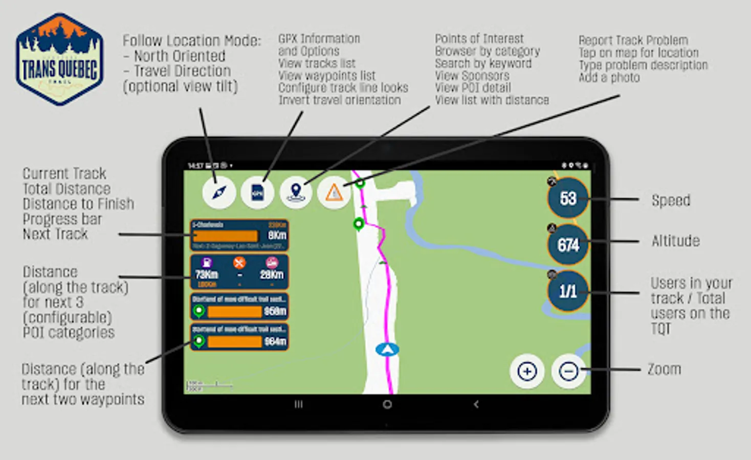 With this app you will be able to navigate the trail with an offline map, view all waypoints and browser a curated list of Points Of Interest.