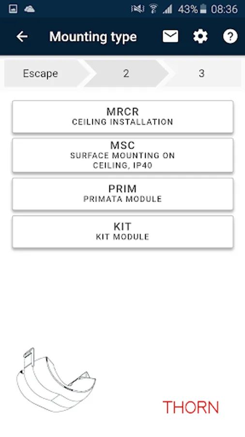 - Display of the article number of the luminaire incl. mounting accessories. Link to the datasheets on the Thorn homepage.