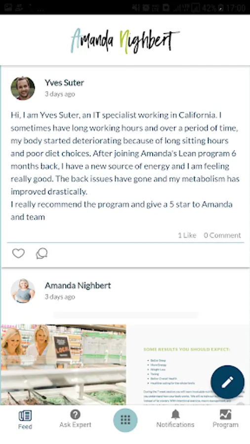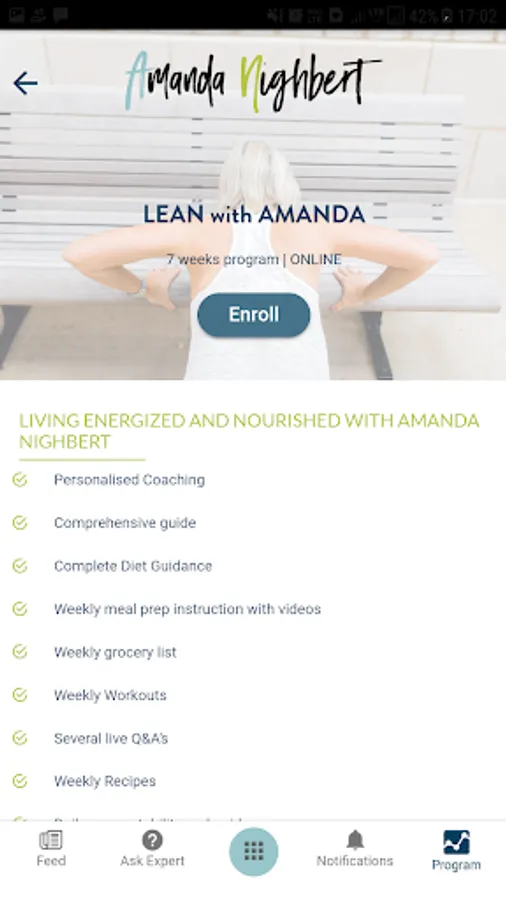LEAN Living Energized and Nourished with Amanda Nighbert is a 7 week online health and wellness program. The LEAN app is used to facilitate the 7 week program. In the LEAN program you will work daily with Amanda Nighbert a registered dietitian with 18 years experience in the field of weight loss. She will guide you through this 7 week program and provide valuable nutrition education and support. In the seven week program you will receive: