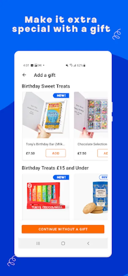Bring your message to life with emojis or make it extra personal by uploading your own handwritten message. And when you’re looking for something really special, add beautiful flowers, premium English gin or choose from a special selection of wines. You can even switch up your chosen design to one of our unique Card Gifts; adding luxury chocolate, fun socks or even a delicious birthday cake mix!
