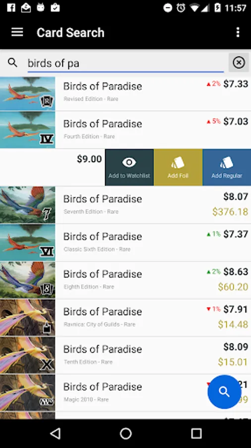 • Fast search for cards and pricing