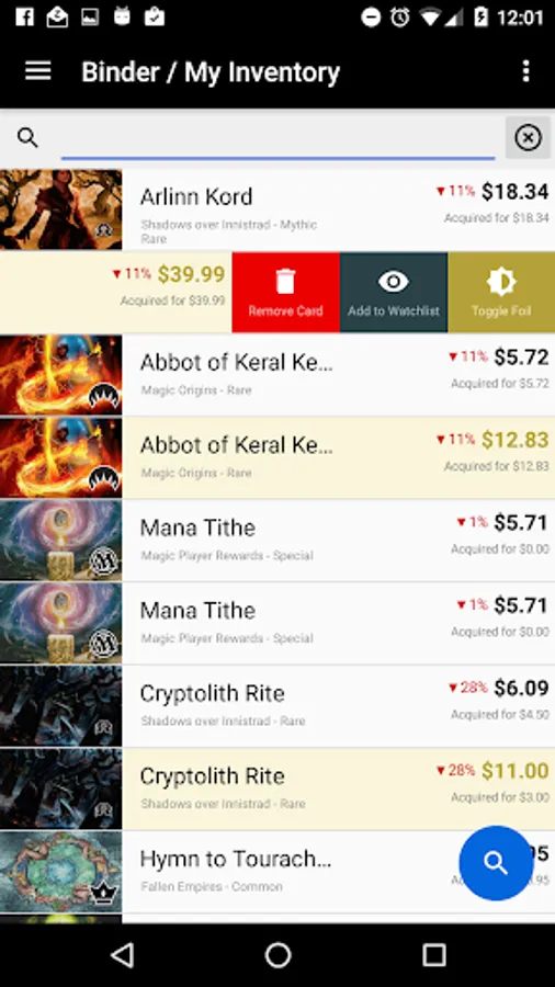 Echo MTG is a third party pricing application for Magic the Gathering card collectors, players, and store owners. It leverages a website that tracks over 10 million dollars worth of player inventory and is now available through a quick to use android application.