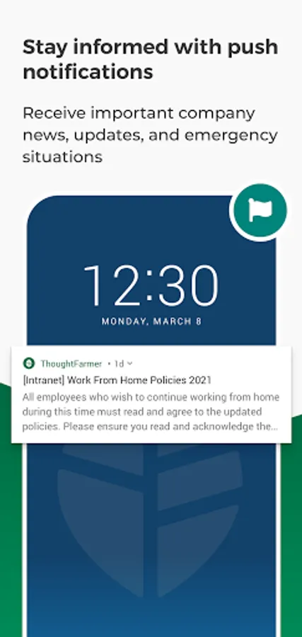 - Stay informed on urgent situations: Push notifications will keep users notified on important company news, updates, and emergency situations.