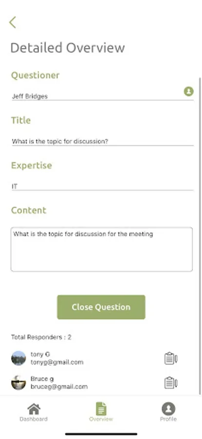 Ook is het mogelijk om op elkaars zoekvragen te reageren. Op deze manier houd je gemakkelijk overzicht van wie je nog even moet contacteren na de sessie.