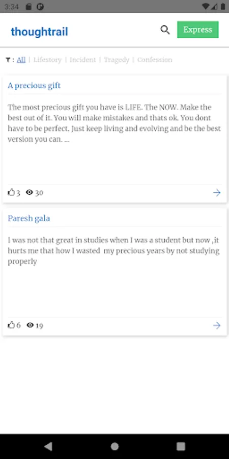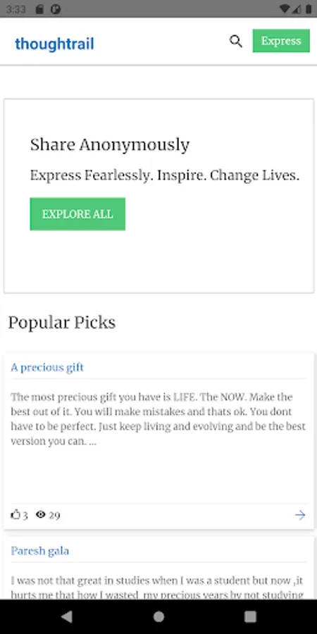 thoughtrail.com is a platform created for users who want to stay anonymous and post incidents, lifestories and their feelings. However if a user wishes to reveal his name he can select the option.