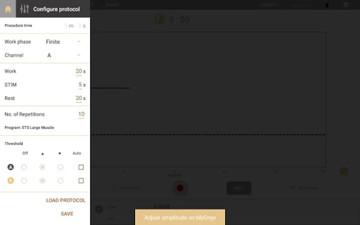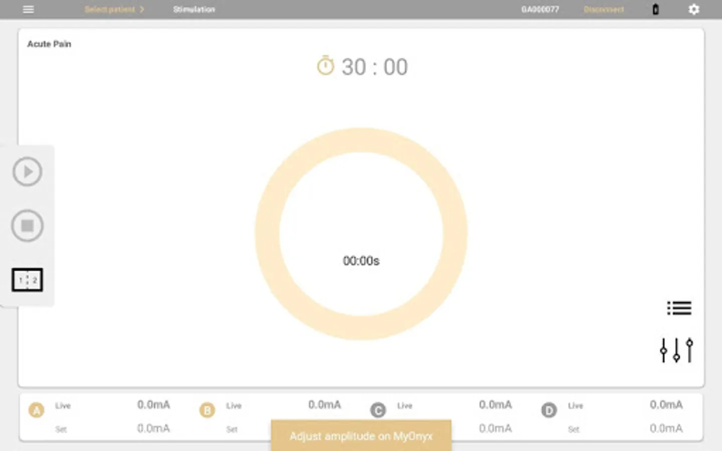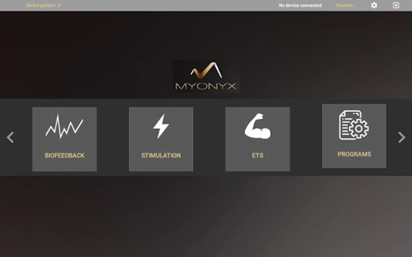 The MyOnyx Mobile app is an application for Android devices, intended to work with the MyOnyx hardware as a remote controlling device. It shall allow all the features and modalities of the MyOnyx device to be facilitated. These include: Electro stimulation, EMG and Biofeedback, and the combination of these as ETS (EMG triggered stimulation). The app will communicate with the hardware in a two-way fashion, meaning information shall be both transmitted and received This app allows users to use four main features: