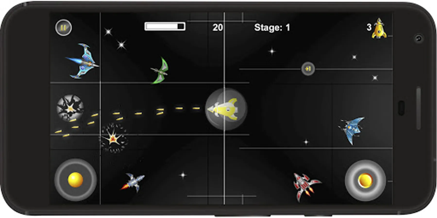 Space Shooter 360° brings back all the fun of your favorite arcade games. Launch your spaceship and prepare to battle relentless enemies as they try to take you out! Use aim lines for better accuracy so you can rack up more points. Enemy spacecraft fly in from all directions, ready to destroy you. Use machine gun fire to stop the onslaught and earn extra lives or restore health.