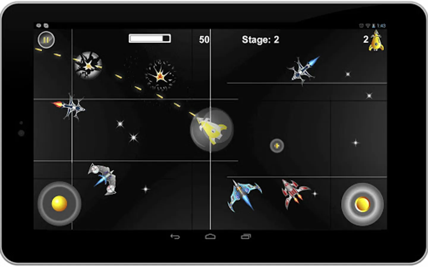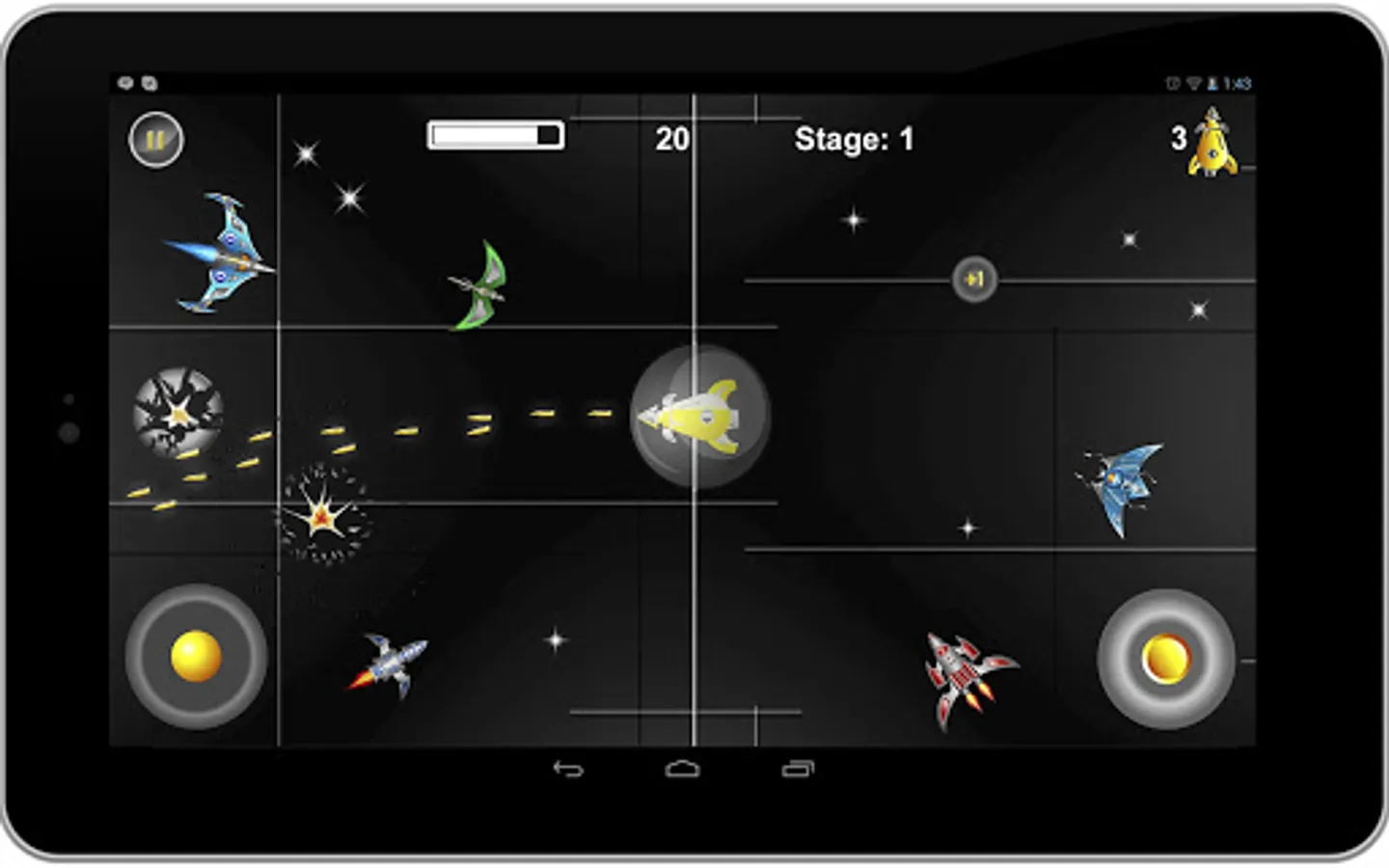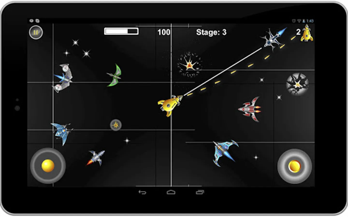 Take your attackers out one by one with a satisfying explosion! Simple controls allow you to pivot and fire with the press of a thumb. Work through each stage to earn more points and prove yourself to be the champion of outer space!