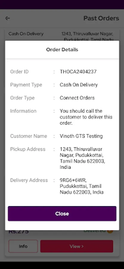 On Thozha Delivery, you'll have the option to live to follow your order directly from the store/restaurant to your doorstep.