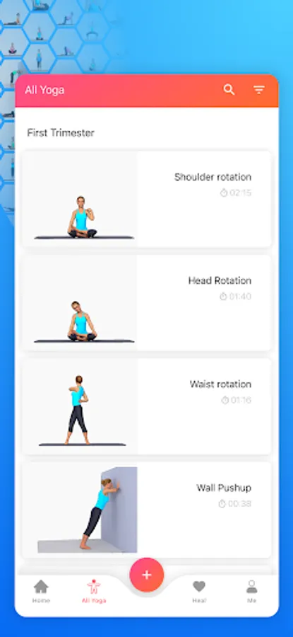 * YOGA ROUTINES FOR EACH TRIMESTER: Daily yoga workout program tailored for each trimester of pregnancy. Routine includes yoga poses suggested by experienced yoga instructors for each trimester targeting full-body routine workout.