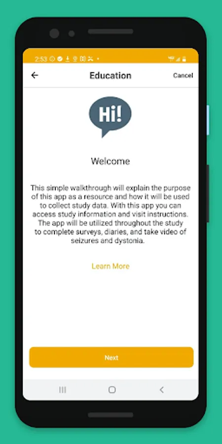 With this app you can access study information and visit instructions. The app will be utilized throughout the study to complete surveys, diaries, and take video of seizures and dystonia.