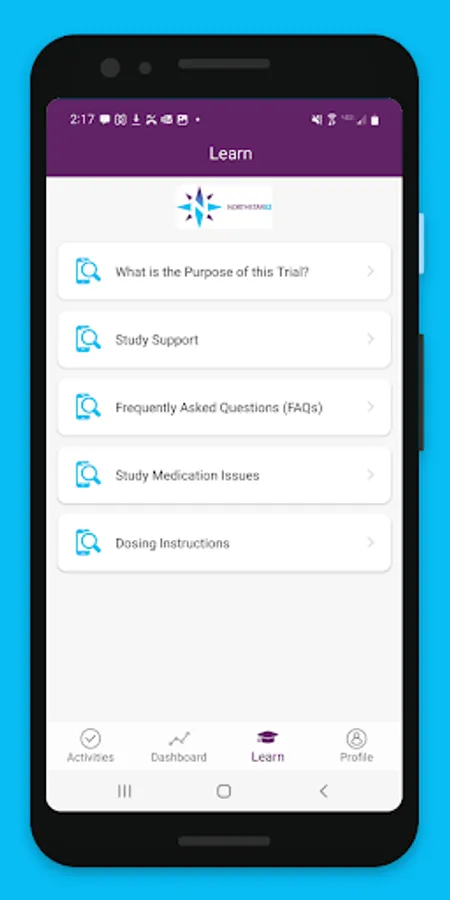 You will use this app to consent and complete activities for the NORTHSTAR-02 Study