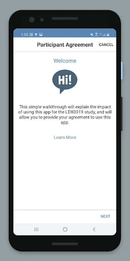 You will use this app to complete questionnaires throughout your participation in the LDX0319 Study.