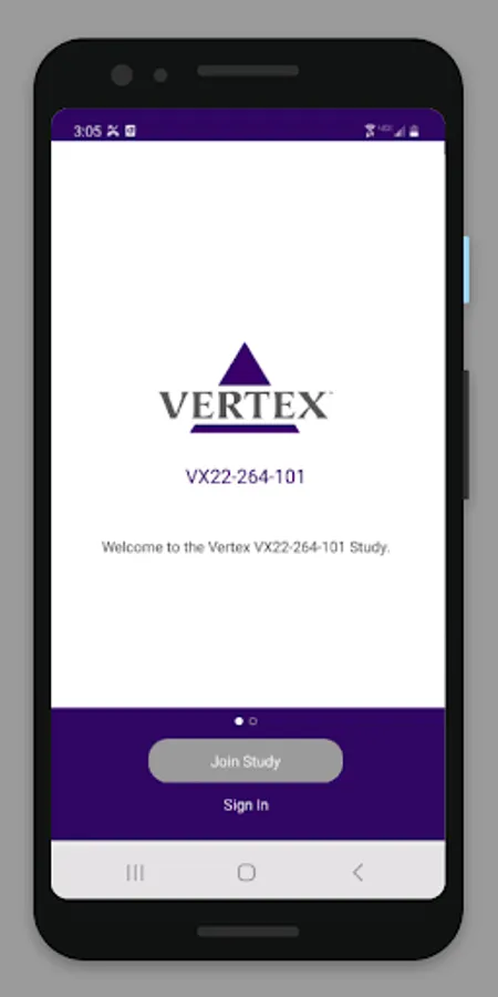 "You will use this app to access 2 things throughout your participation in the Vertex T1D VX22-264-101 Study: electronic consent and video visits with your Study Doctor.