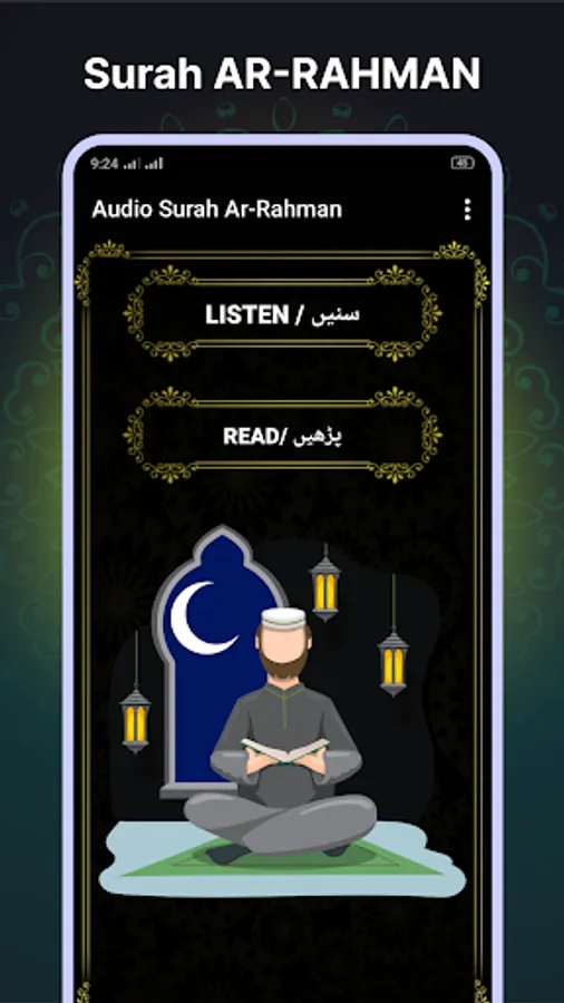 Download the app. Open the app and after the loading screen select your choice for reading and listening. In reading, you just need to read and in Listening, you need to listen to the Surah Ar-Rahman and enjoy it.