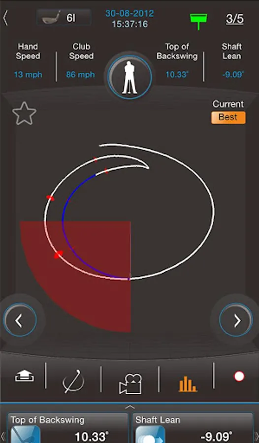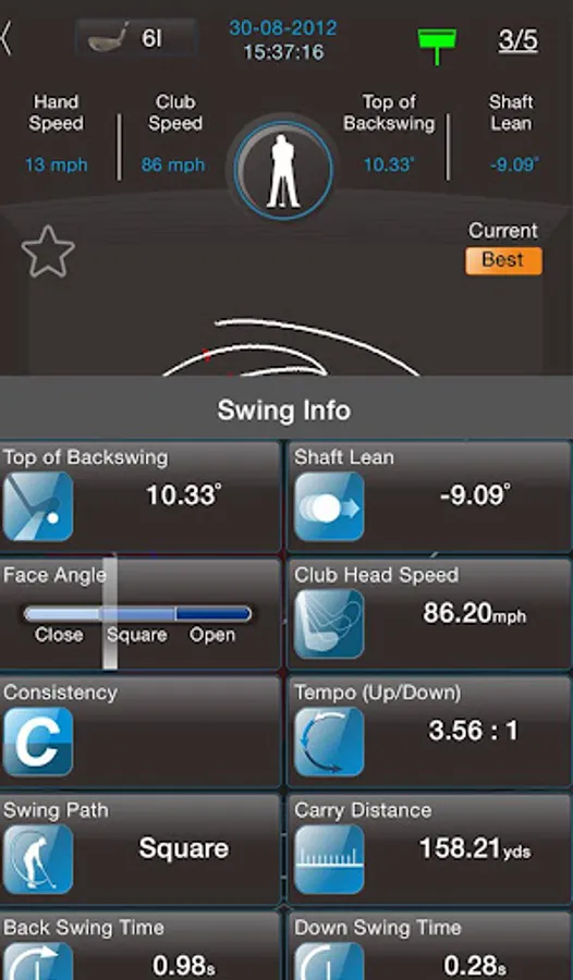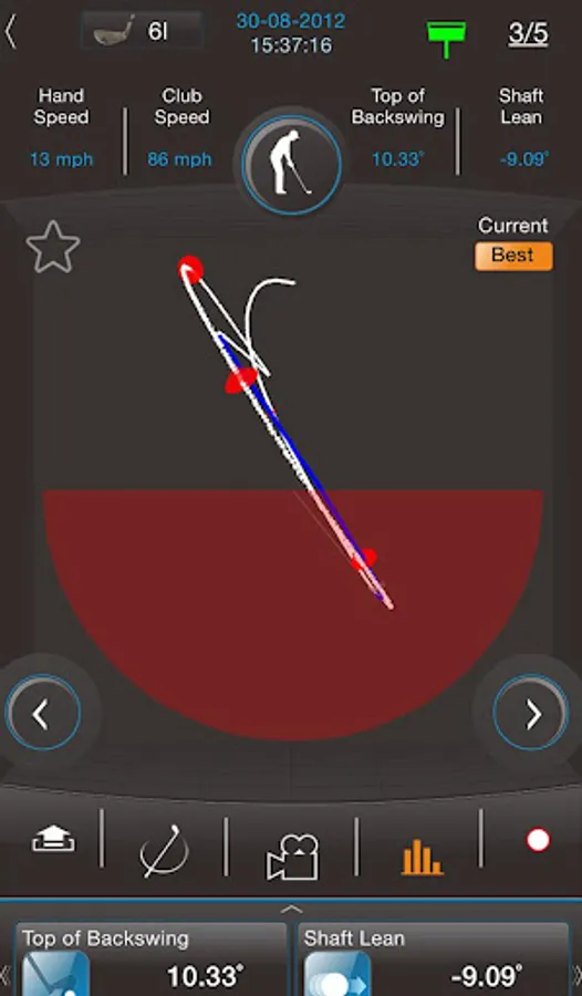 5. Shaft lean at impact - It helps to identify if you have hit the top of the ball, bottom or square at impact. Directly related to face angle.