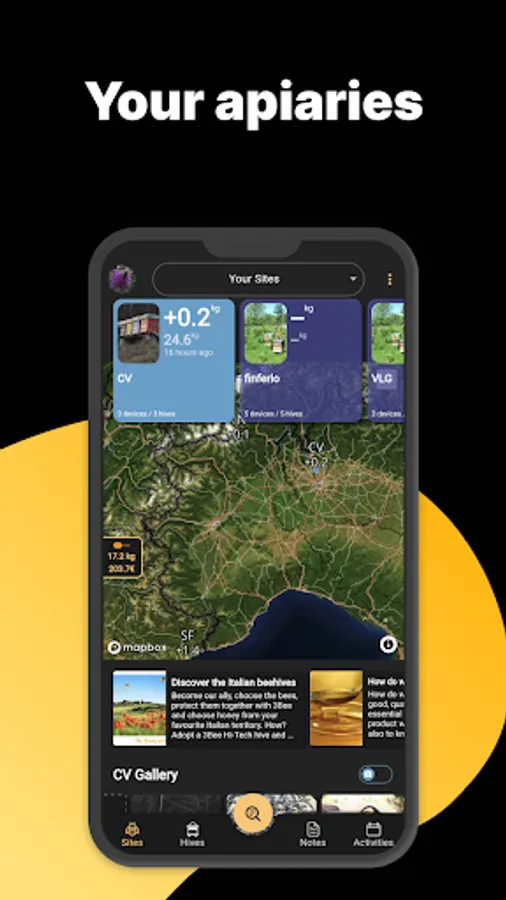 With 3Bee's app you can access it both as a beekeeper and as an Adopter. As a beekeeper you will be able to use it as a managing tool for your hives, better organizing and handling your apiary work, saving time and increasing your productivity. You will be able to set up a calendar of operations, create written and voice notes, set deadlines and notifications.