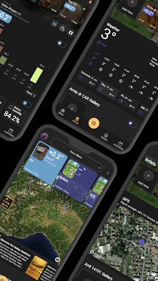By connecting your APP to 3Bee monitoring systems, you can constantly monitor your hives and bees remotely. You will always have the most important internal parameters of your hive under control: weight, indoor/outdoor temperature, sound frequency, indoor/outdoor humidity, weather forecast.