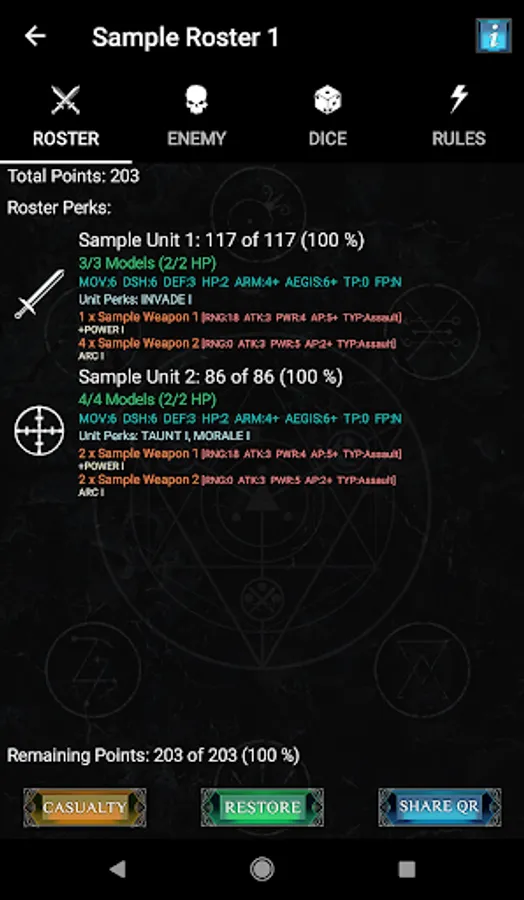 The WARSURGE App is your primary tool to play WARSURGE. You use it to design your Units and their Weapons. In addition, it provides you the ability to make Rosters, share data, roll dice and more.