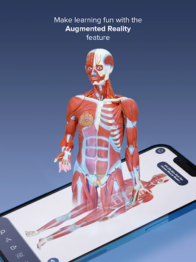 New! You can now learn all about the Human Anatomy online with the virtual version of your model. Download the new and free 3B Smart Anatomy app and start right away to test your knowledge, display your very own AR model, and use the anatomical structure hotspots to study in detail.