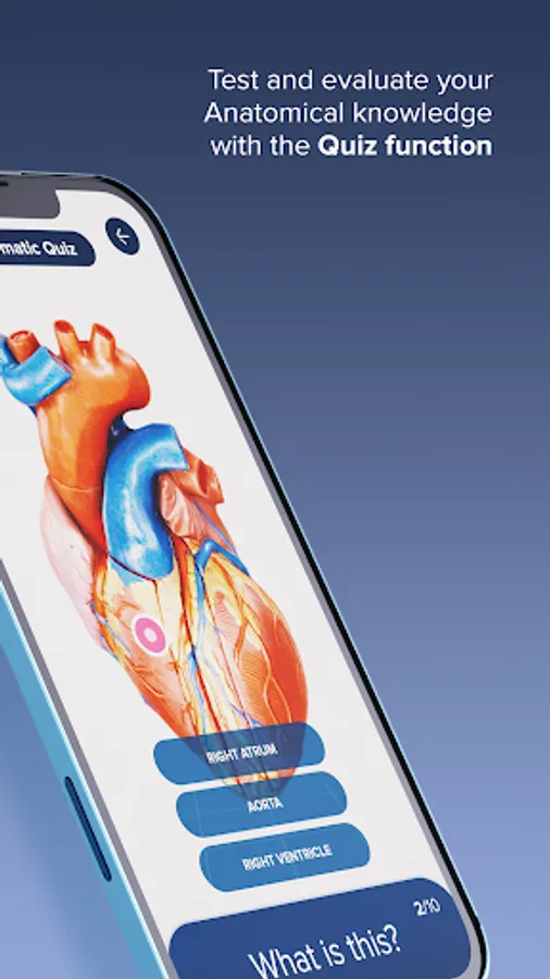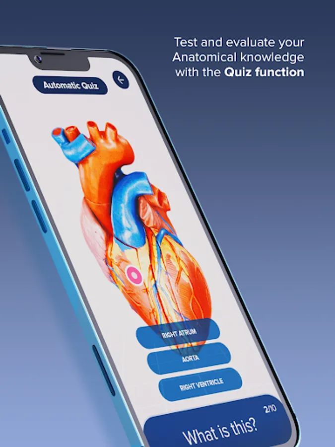 • Use the Quiz to answer “where is” and “what is” questions to test and improve your anatomical knowledge with instant results and final score evaluation