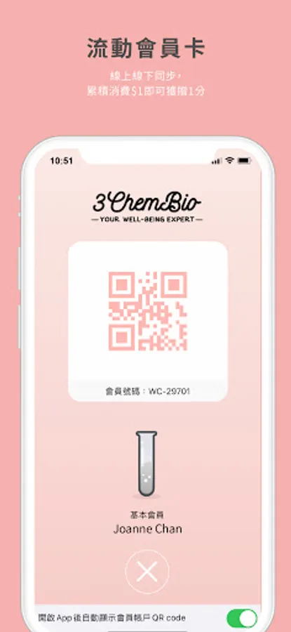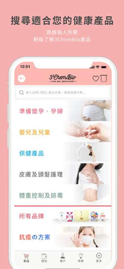 Through the 3ChemBio mobile app, you can use 3ChemBio's quality services online and offline simultaneously. Browse 3ChemBio's latest products and discounts easily and conveniently, provide you with convenient membership functions, learn about pharmaceutical information anytime, anywhere, choose your own health regimen, and maintain your health and beauty.