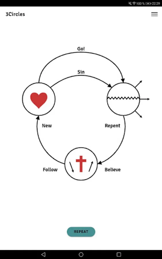 3 circles is a simple method that can be used to share the Good News. It depicts how sin destroyed the relationship between God and man, and how Jesus restores this broken relationship.