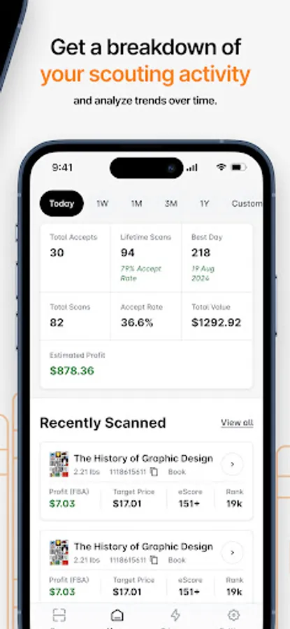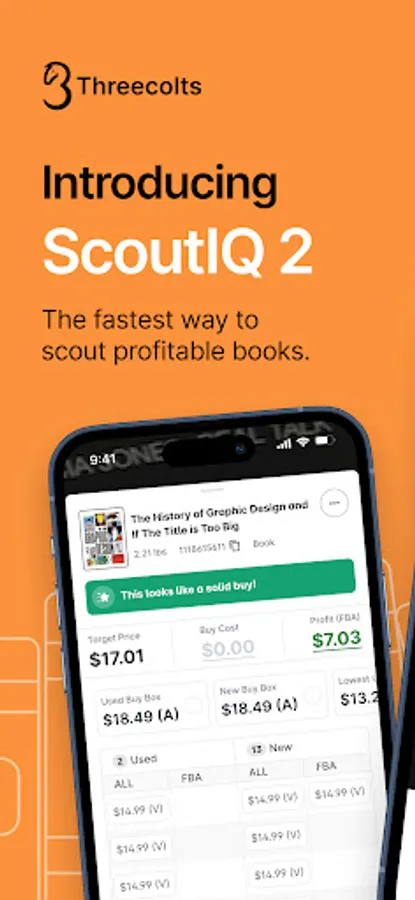 With ScoutIQ 2, users can scan barcodes or manually search for books to evaluate potential profitability based on real-time and historical Amazon data. The app helps sellers make data-driven decisions while sourcing inventory in the field.