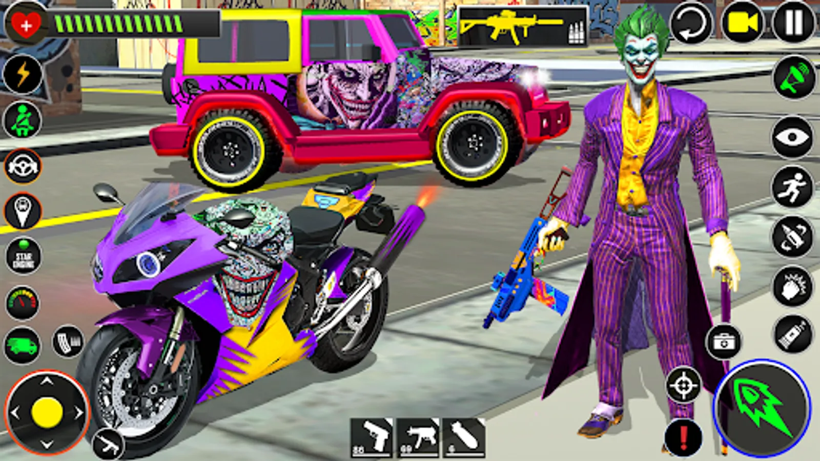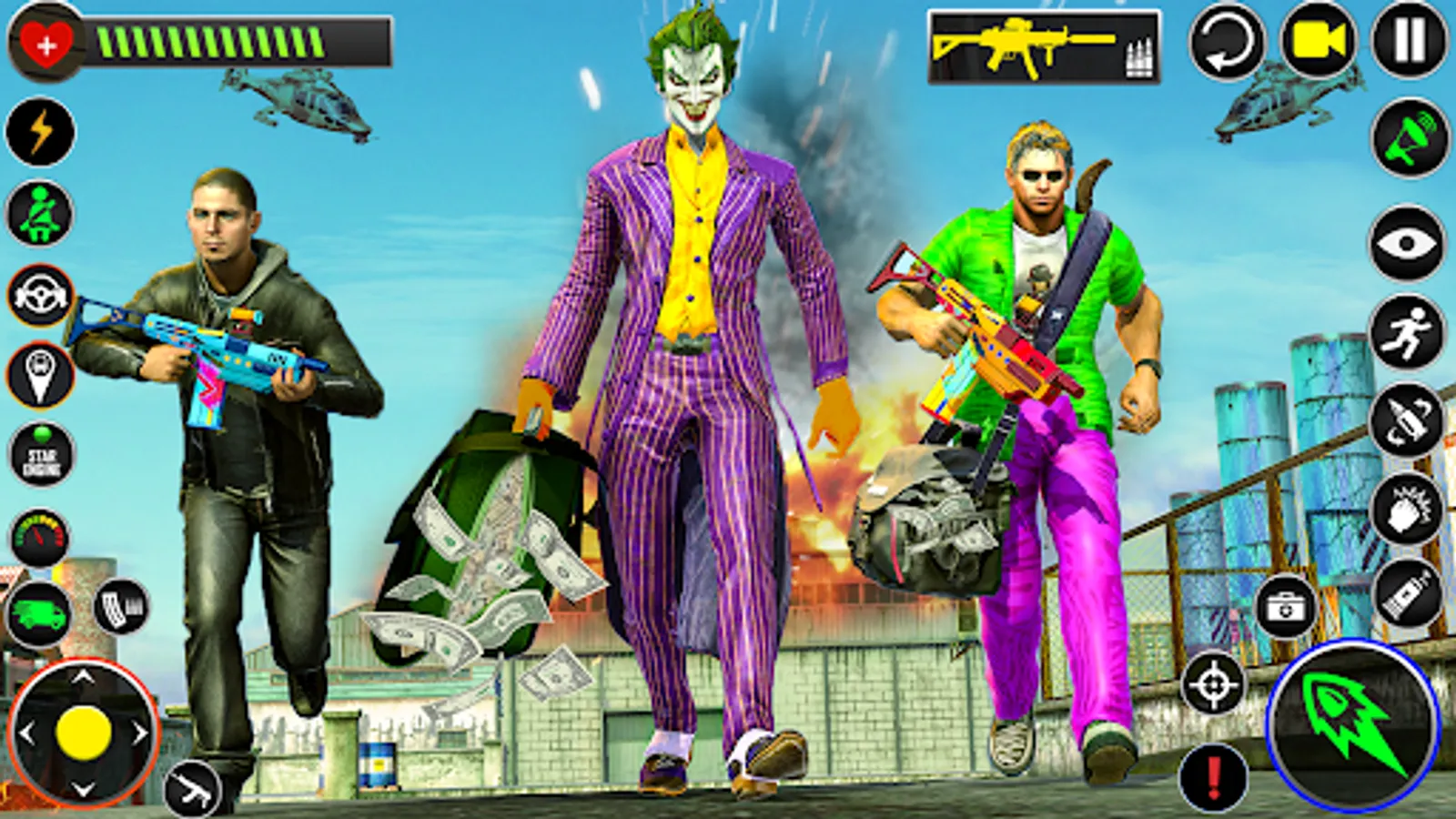 Be a city joker and take the challenge of shooting gangs game down the mafia city in grand killer clown gangster games. To win in the killer clown bank cash robbery game must go to the vegas crime clown and make a plan to take over the city bank. In clown joker games be a gangster and join the open-world gang robbery games. In killer clown bank robbery game, explore the crime city for any opportunity to beat the enemies and win grand bank robbery games. Be the grand clown joker and get out of a dangerous gangster mafia crime city. In Killer clown bank robbery games, fight like the gangster mafia boss in the grand bank robbery game. Play as a real clown and joker mafia gangster in bank cash robbery game. Build the ultimate shooting gangs for vice city town in killer clown mafia game.