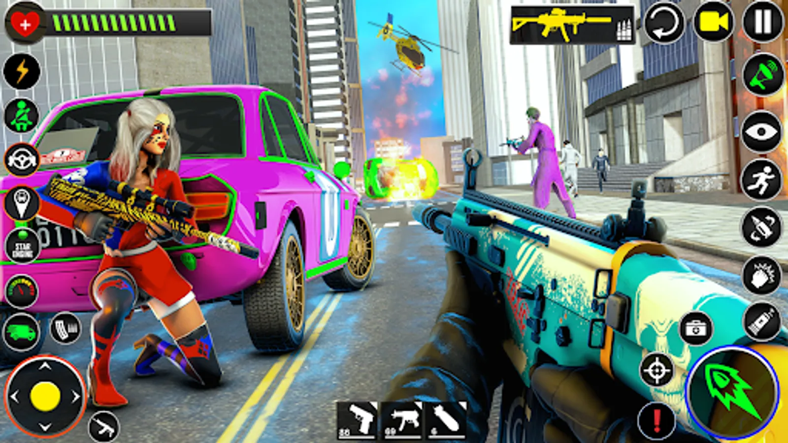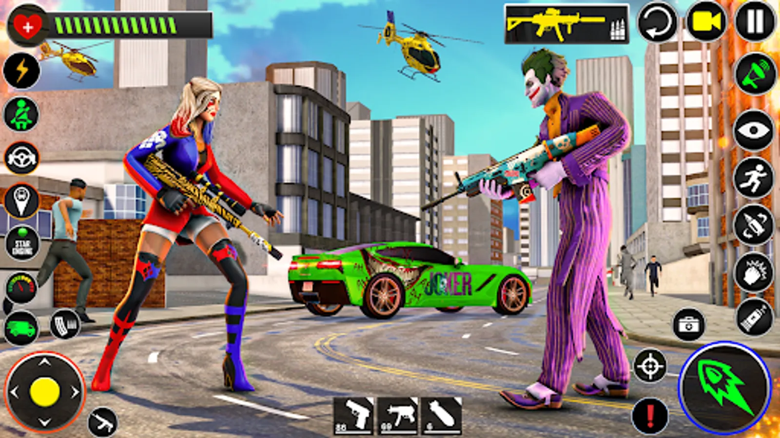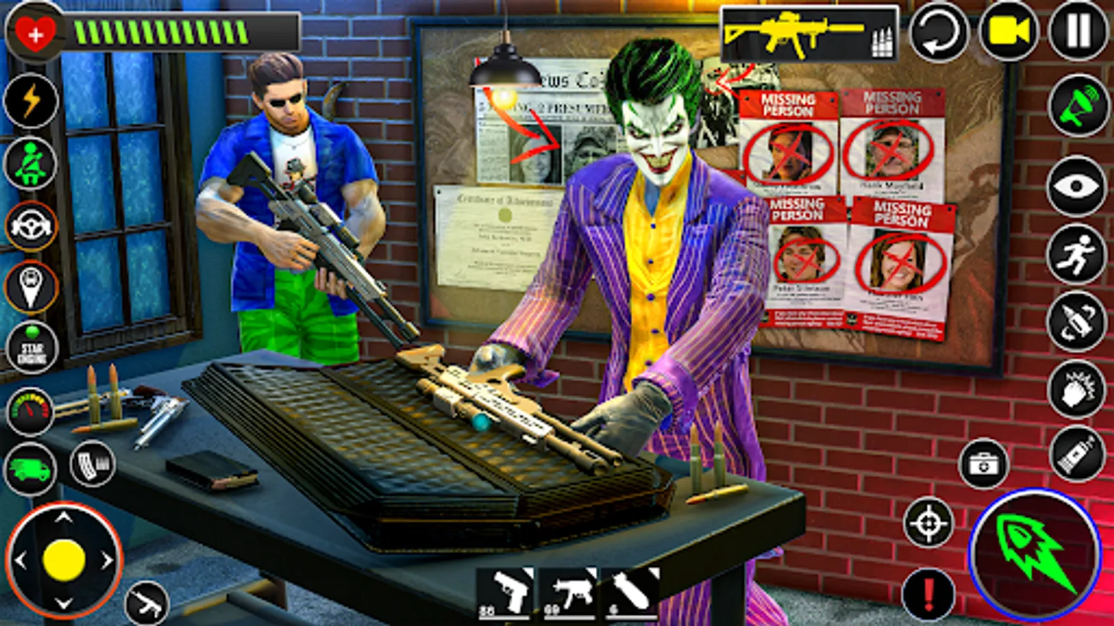 In Killer Clown Joker Games, the scary clown mafia and his gang robbers will fight with the police and gangster of super simulator city. Killer Clown Mafia Crime City is an epic bank robbery game and gang shooting game between city people, police cop,and gangster. Be the scary Joker and horror clown to compete with your enemies in Killer Clown Bank Robbery Games. Boost your mafia heist skill to escape fast from super simulator city. Many horror clowns and jokers clowns waiting for the perfect move to fight gang robbery by killer clown shooting games. Joker must be ready to fight the super simulator city mafia in killer clown bank robbery games. Scary joker games have many guns similar to any killer clown gun shooting game. Just grab your gun and start gun-shooting mafia missions in clown jocker games.