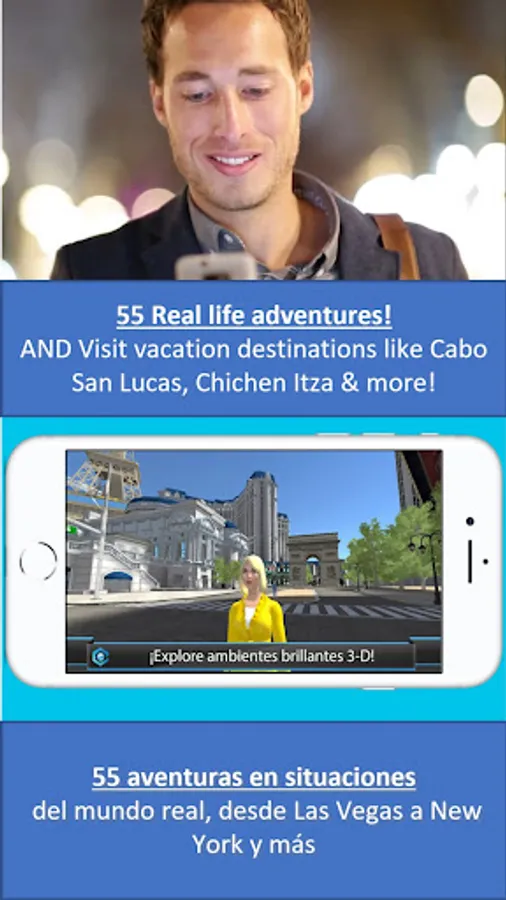 - Users can travel to 56 different adventures in real-world places and situations from Central Park to Las Vegas, Cabo San Lucas, Chichen Itza or to the grocery store, office, movie theater, and more.