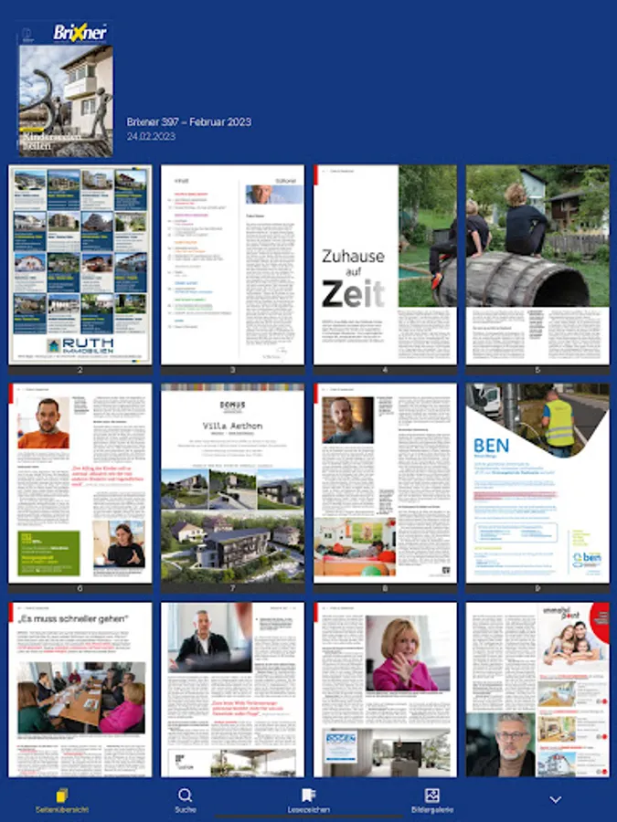 The Brixner app is available to you free of charge in the Google Play Store. In the app, you will find the title pages of all of the issues that are available, which you can then also read immediately or download free of charge on your Android device. There are thus no longer any boundaries to your reading pleasure: in offline mode, you no longer need an Internet connection to access the Brixner or the corresponding multimedia content such as videos, audio recordings, and image galleries.