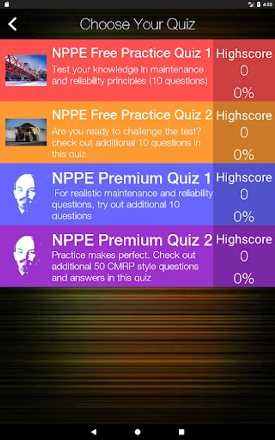 This mobile app allows you to take short quizzes while you are waiting in line, on the bus , the train or at the coffee shop to help you to memorize the NPPE concepts without struggle.