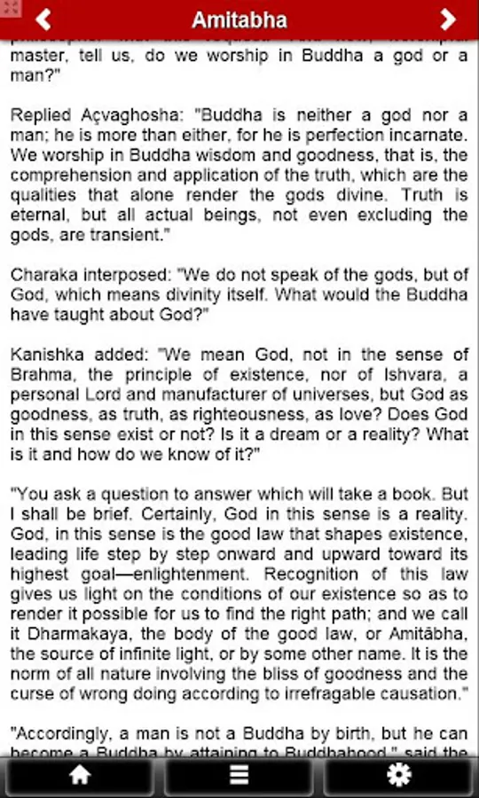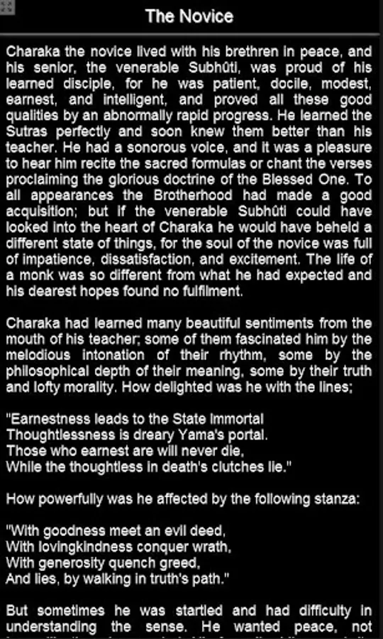 This is a short story set in the first century CE during the height of Buddhism in India. Carus uses the story as a frame to discuss Buddhist concepts of God, non-violence and religious tolerance. Carus, the proprietor of Open Court Press, was a prolific author on Buddhism, Taoism, philosophy, and other topics.