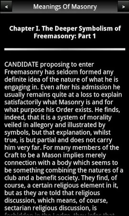This is a set of essays which discuss the esoteric side of Masonry. The author, Walter Leslie Wilmshurst, (b. 1867, d. 1939) attempts to demonstrate that Masonry has a deeper meaning, specifically the striving for human perfection, and is firmly in the mainstream of traditional mystery teachings.