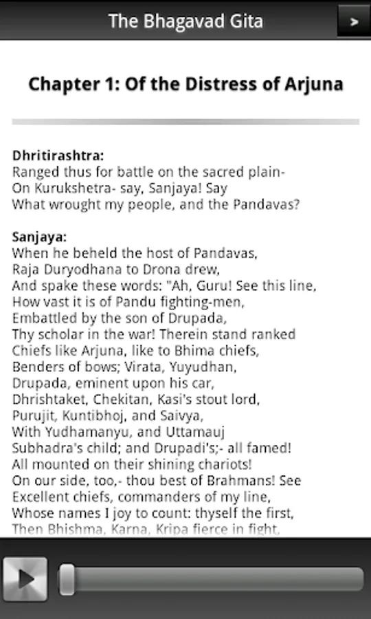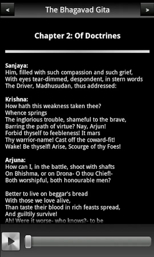 The Bhagavad Gita is technically part of Book 6 of the Mahabharata, although it is known to be a later accretion to the saga, which stands on its own merits. It is a dialog between the God Krishna and the hero Arjuna, taking place in a timeless moment on the battlefield before the climactic struggle between good and evil. The Gita (which can be found in hotel bedstands throughout India) is a classic summary of the core beliefs of Hinduism. It has had a significant influence far beyond Hinduism.